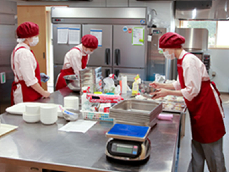 お肉は国産のみを使用しています。野菜や加工食品等を含め、冷凍食品は使わず、すべて手づくりで提供します。生産者の顔が見える食材でおいしく調理しています。食事のマナーを身につけましょう。