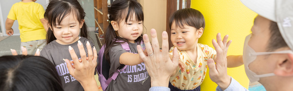 「いただきます」「ごちそうさま」の挨拶、イスに深く腰かけ、足をブラブルせずによい姿勢で食べる、食べ方や箸の使い方、食前の手洗い、食後の歯磨きなど、食に関する基本マナーを学びます。おいしく、楽しい食事の時間に!